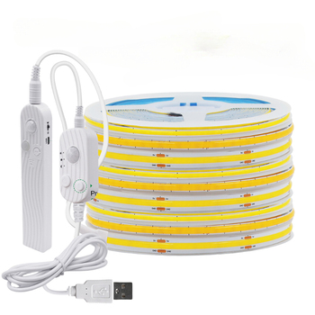 Tira LED COB de 5V con cable de 2 pines/USB/caja de batería/interruptor/atenuador táctil/barrido manual/cinta de lámpara con Sensor de movimiento PIR 1M 2M 3M