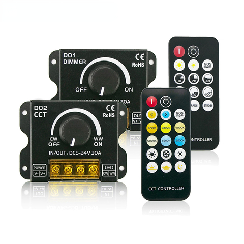 30A LED-Streifen-Lichtknopf-Schalter-Dimmer mit drahtlosem Rf-Controller für 5050 SMD COB CCT-Band-Lichter stufenloses Dimmen DC5-24V
