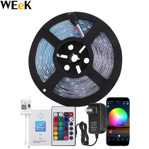 Fita de luz de led wifi, smd rgb à prova d' água led 5m fita de diodo flexível com controle remoto + tomada eu