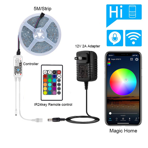 スマートWifiコントローラーLEDストリップ照明5050 RGBストリップ (24キーリモコン付き)