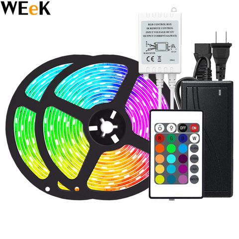 Tira de led rgb à prova d' água, 5050 v 12v 5m 16.4ft, faixa flexível + 24 teclas de potência, controle remoto ir
